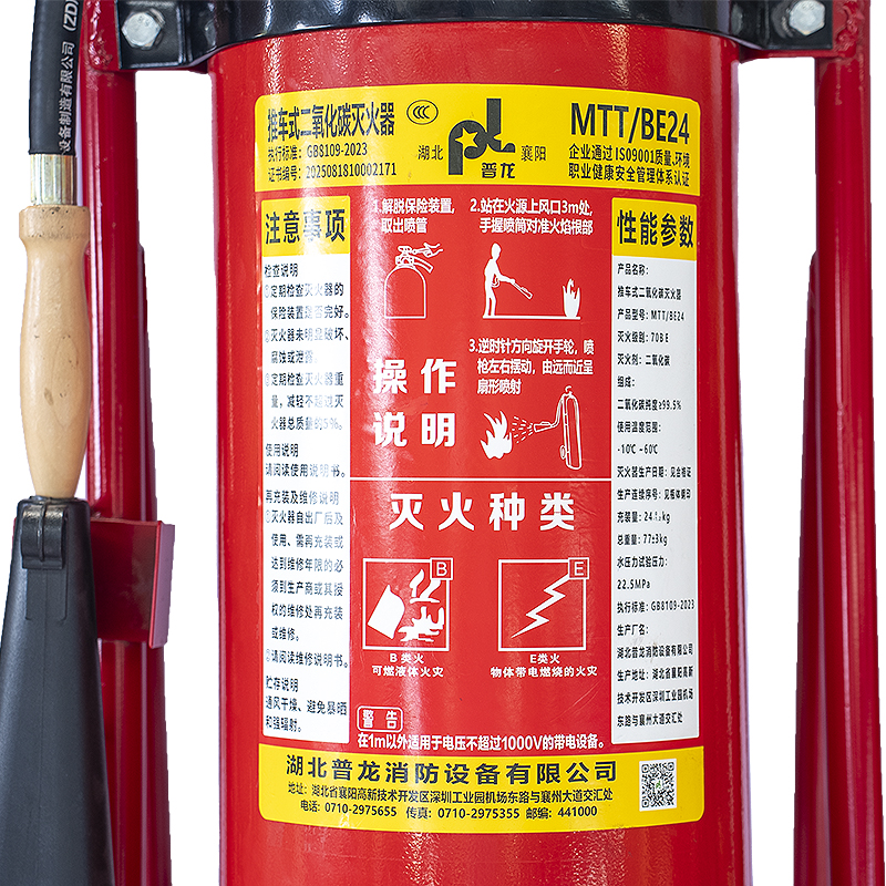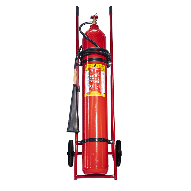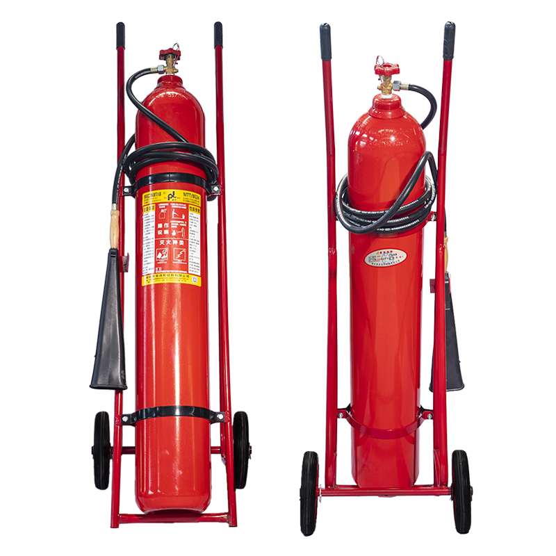1、推车式二氧化碳灭火器:推车式二氧化碳灭火器容量大、喷射距离远,适用于厂房、机房等大面积场所的高危火情,灭火高效且对设备无损伤。